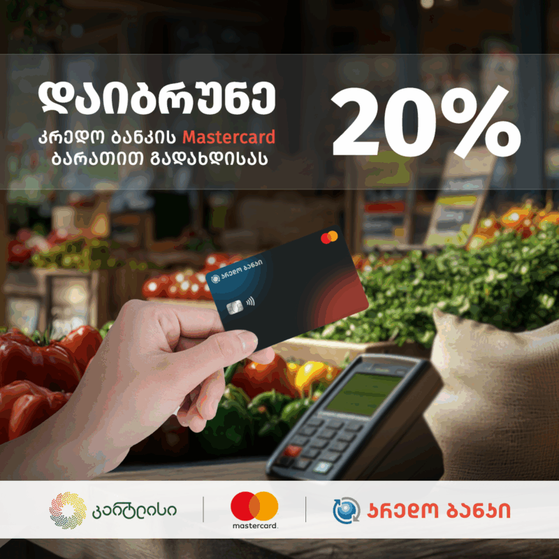 დაიბრუნე 20% კარტლისში, კრედო ბანკის Mastercard-ით გადახდისას